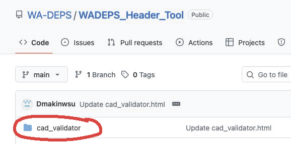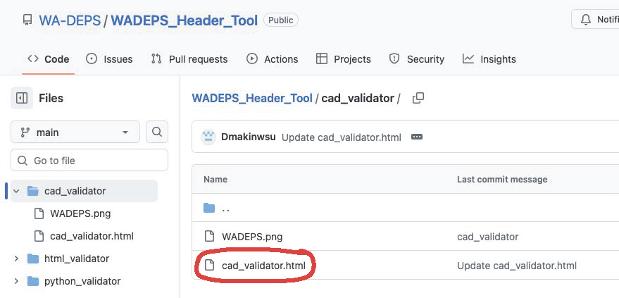 2. Click on the file icon labeled “cad_validator.html”. The HTML code for the validator will appear in the main window.