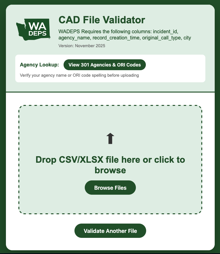Review the required Excel headers for CAD data and remember to remove any extra tabs in your Excel file. Download and use our file validation tool before you submit CAD data in the WADEPS Reporting Tool.